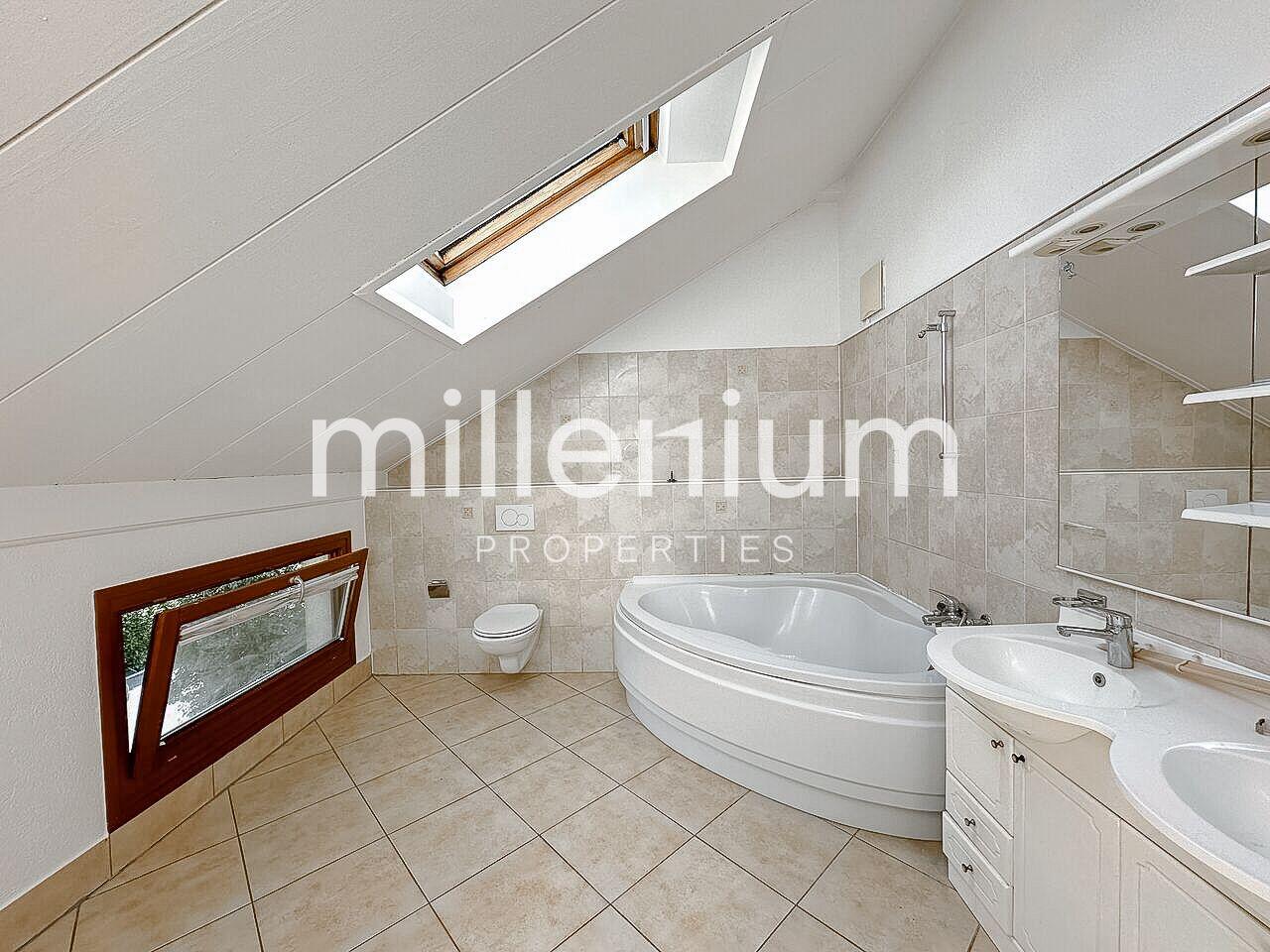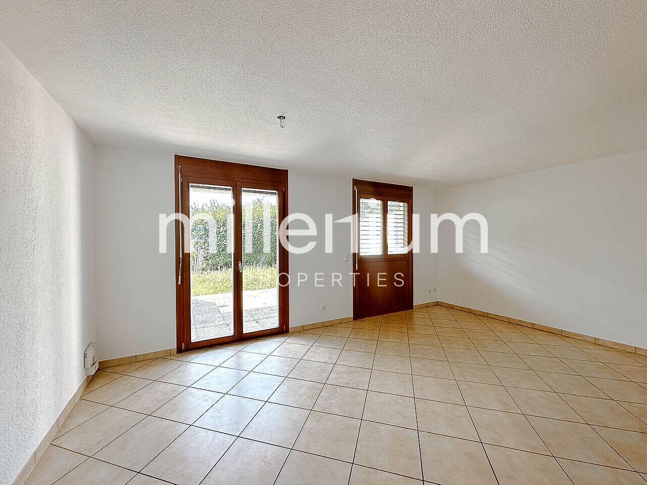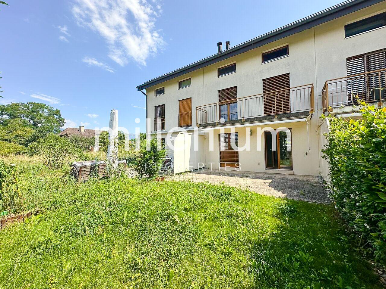 Cette villa mitoyenne de 232 m2 utile est située dans un lotissement de la commune de Chancy, au calme de la campagne genevoise.
