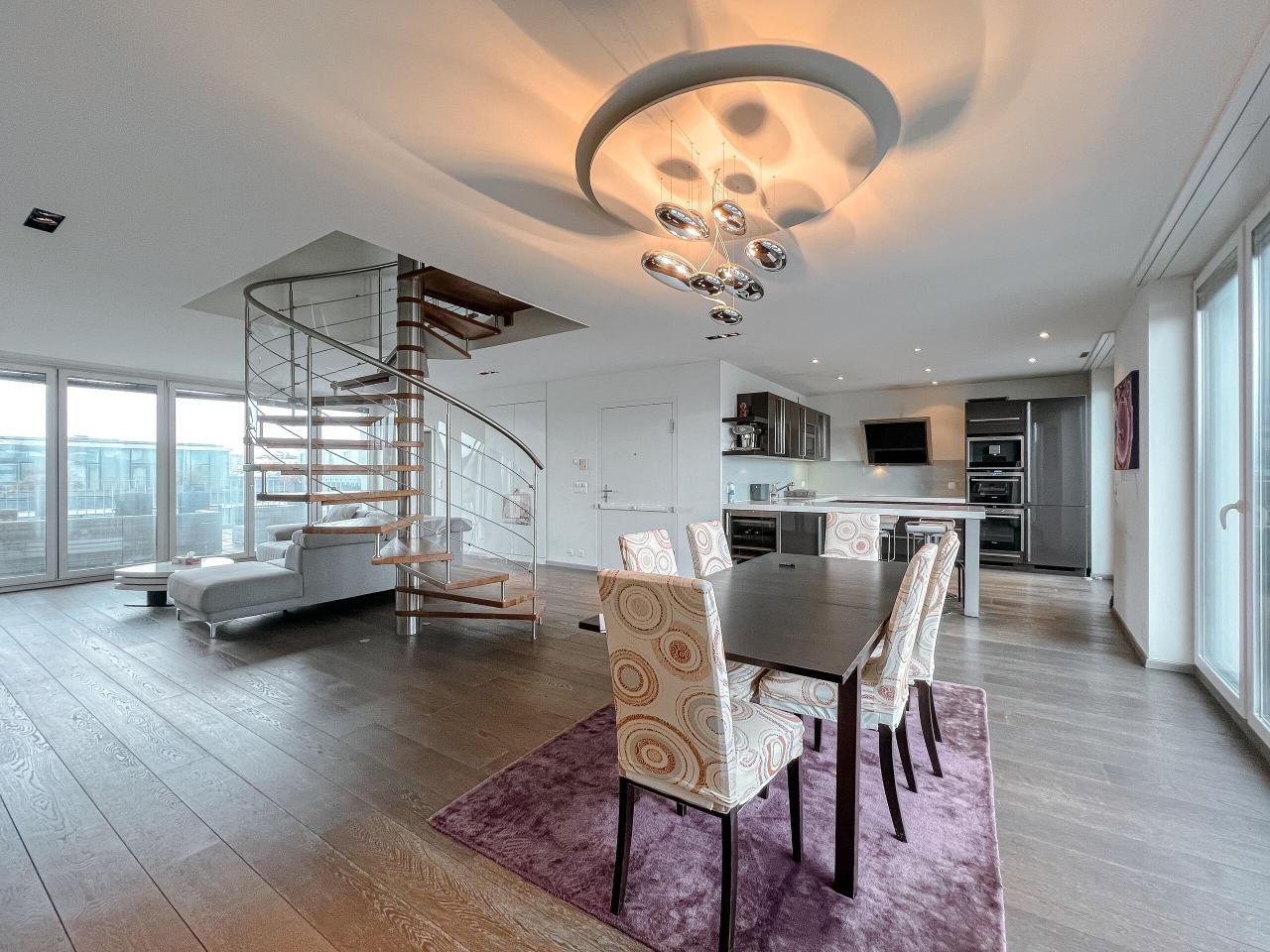 Ce duplex situé en attique au 7 et 8ème étages d’un immeuble sécurisé avec ascenseur bénéficie d'une vue imprenable sur le jet d'eau.