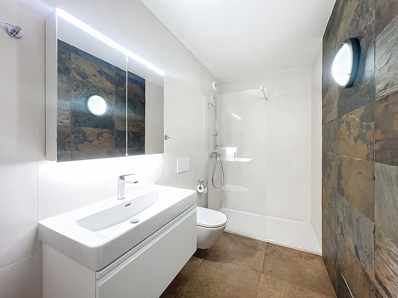 Étage : L’étage abrite une suite parentale avec dressing/ bureau, une salle de bain ainsi qu’une chambre supplémentaire. Rez inférieur : Pièce polyvalente et lumineuse pouvant servir de salle de jeux, bureau, espace TV ou salle de sport, ainsi qu’une salle de douche à l’italienne et une cave/buanderie.