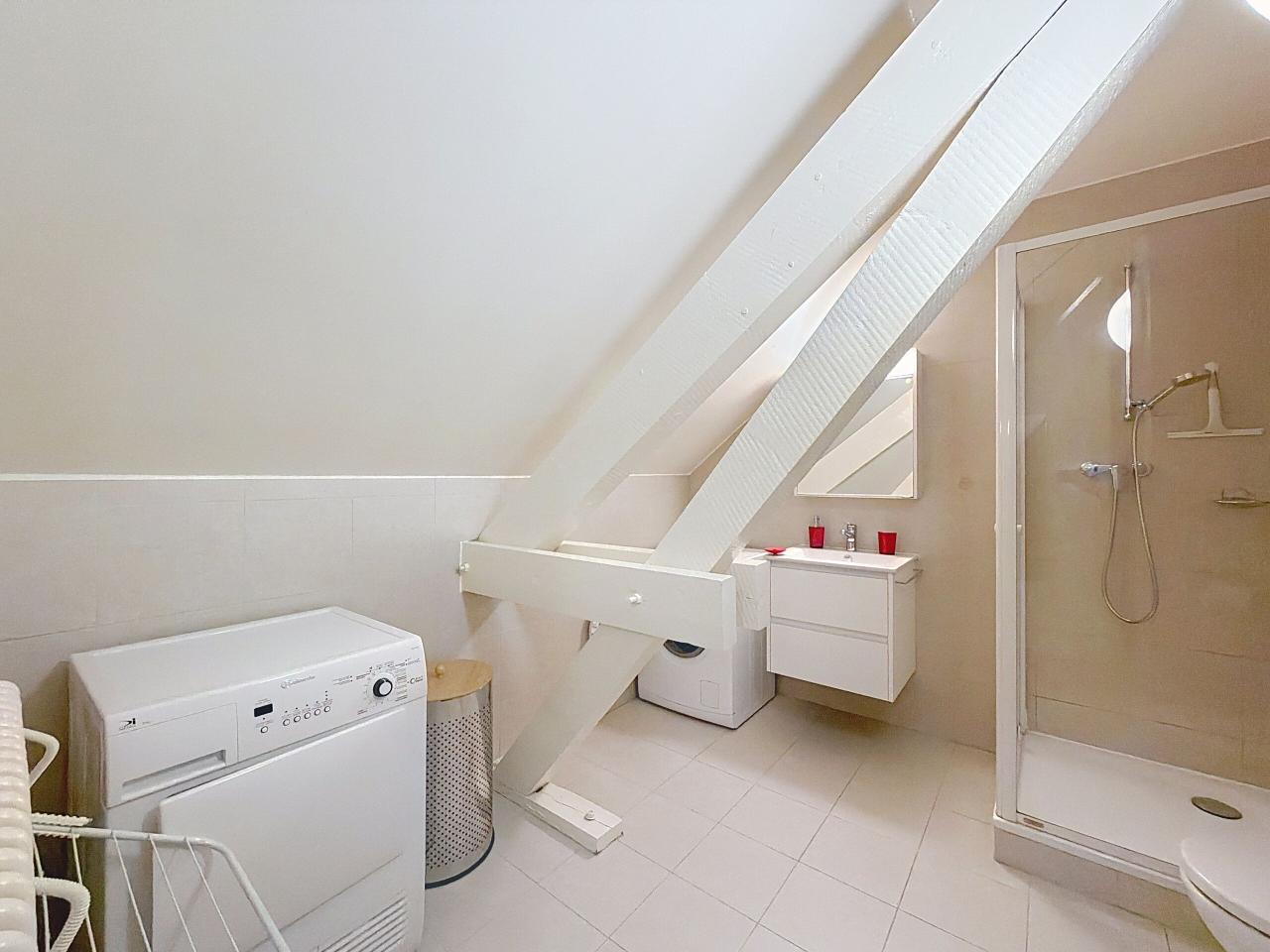 Il se compose d’une lumineuse pièce de vie, d’une cuisine fermée, ainsi que d’une salle de bain avec douche intégrant un espace buanderie équipé d’un lave-linge et d’un sèche-linge.