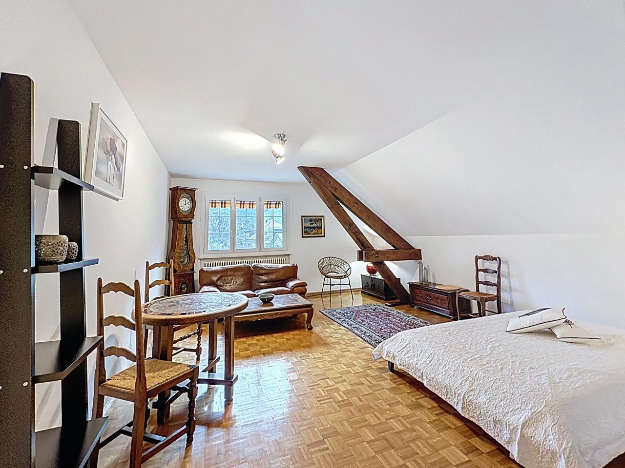 Situé au premier étage d’une villa, au cœur de la commune très prisée de Veyrier, ce bel appartement de deux pièces bénéficie d’un environnement calme et verdoyant, tout en offrant une proximité immédiate avec les commodités.
