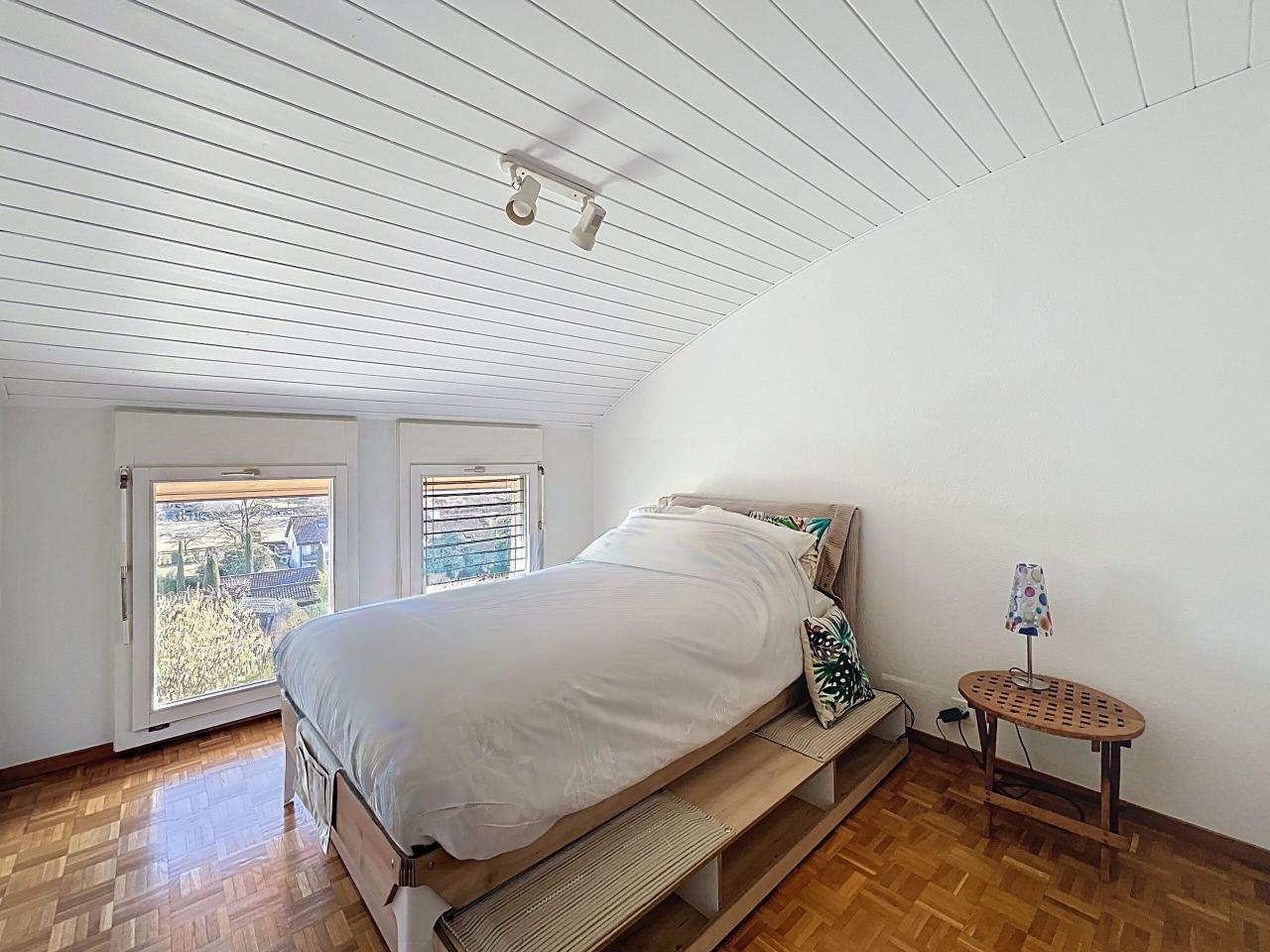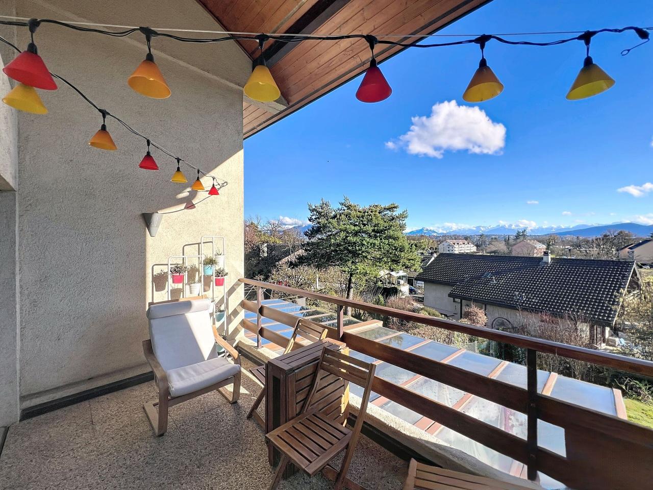 Situé au premier et dernier étage, ce bien séduit par sa luminosité, ses volumes bien répartis et surtout par sa vue imprenable sur les Alpes, offrant un panorama dégagé et spectaculaire.