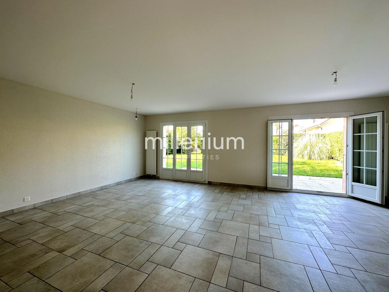 - Une grande pièce de vie prolongée d’une terrasse donnant accès au jardin,