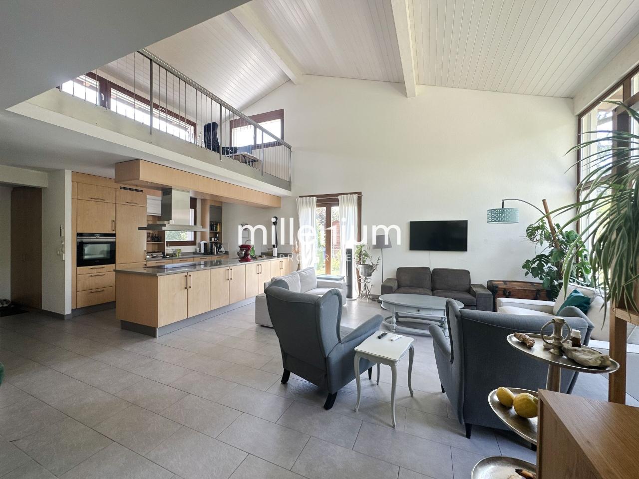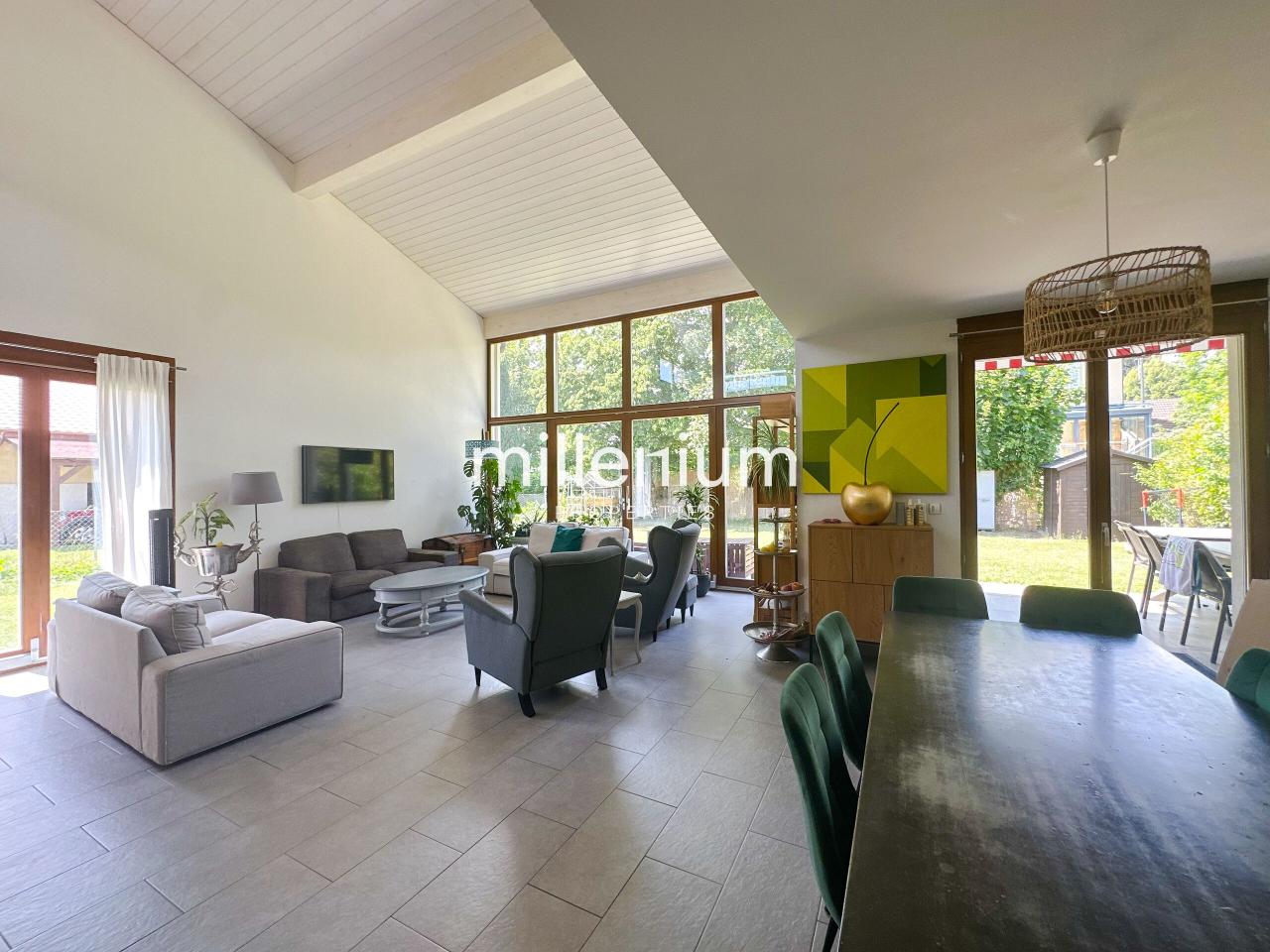 Cuisine ouverte sur un vaste séjour donnant accès direct au jardin