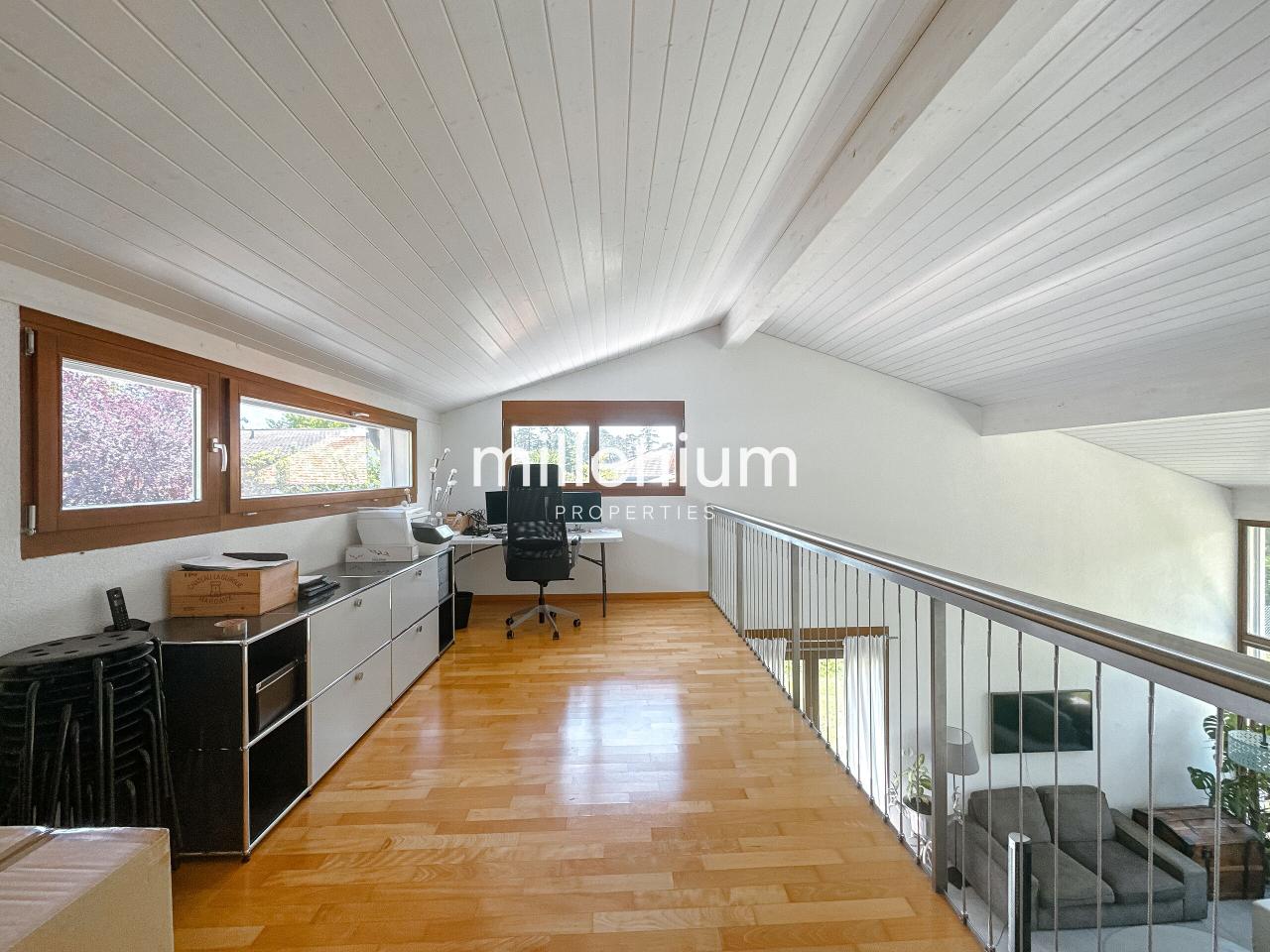 Une grande mezzanine pouvant faire office de bureau ou d’espace détente