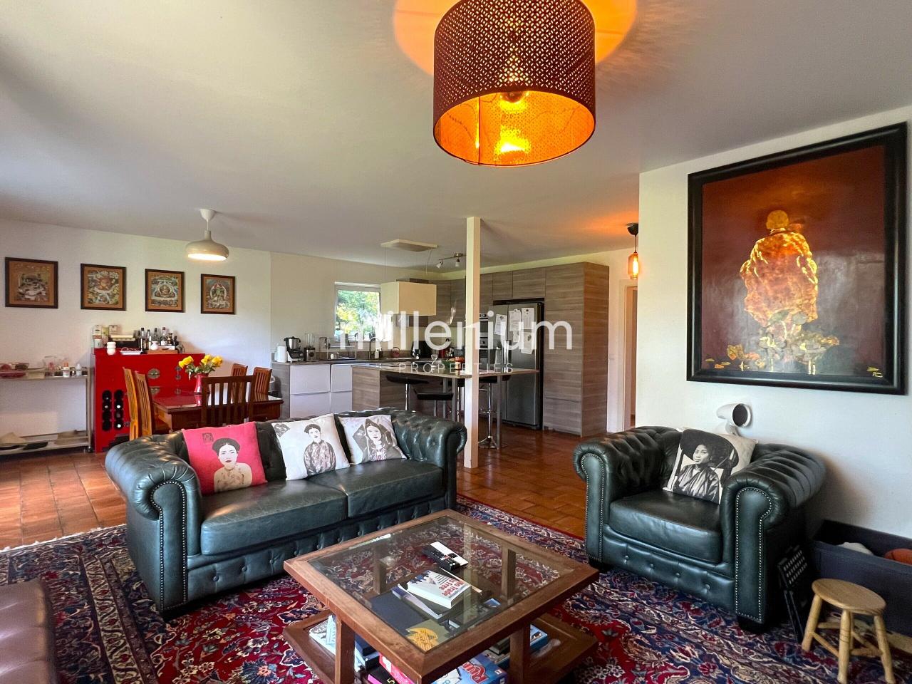 - Une cuisine ouverte sur un grand salon et la salle à manger,