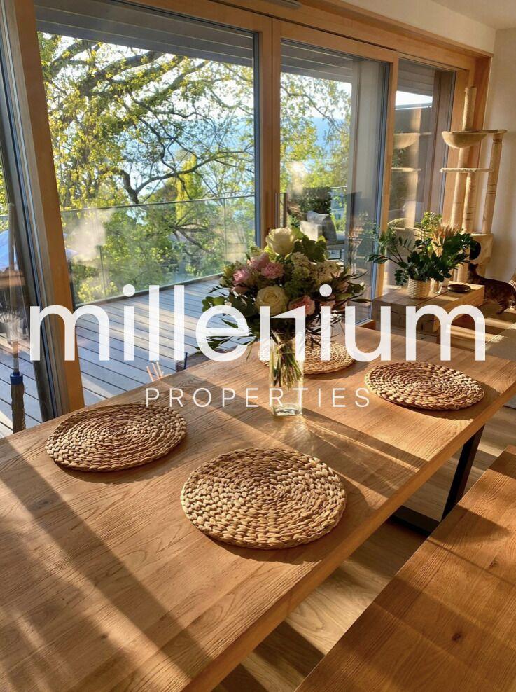 Ce magnifique appartement en duplex construit en 2022, se trouve à proximité immédiate du village d'Hermance. Il offre un espace habitable de 118m2 avec une belle terrasse vue lac de 22m2, et dispose de 2 entrées indépendantes (1er étage et 2ème étage).