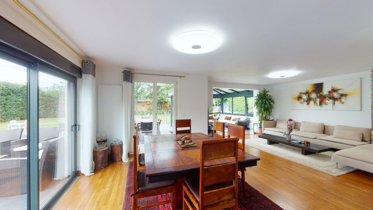 Située à deux pas de la gare de Genthod dans un environnement résidentiel, cette belle maison lumineuse de 8 pièces est répartie sur 230m2. Entourée d’un beau jardin clôturé avec piscine, elle est idéalement conçue pour répondre aux besoins d’une famille.