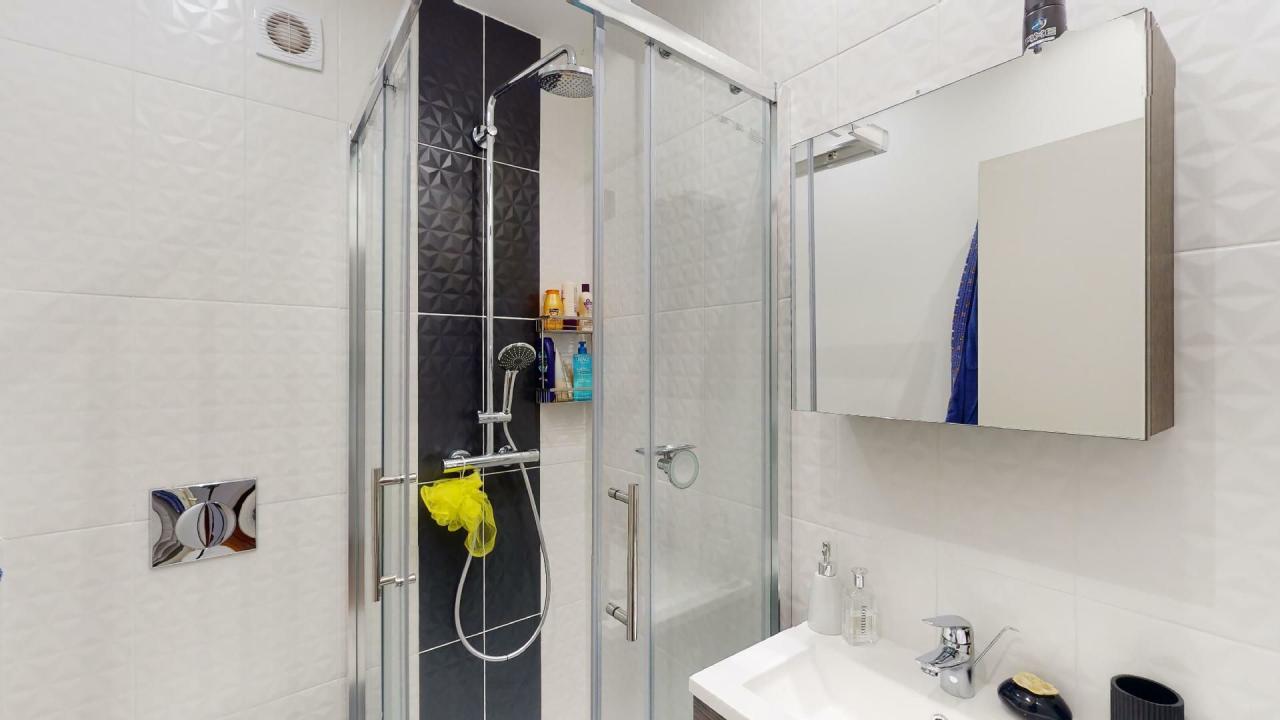 - Une salle de douche avec toilettes.