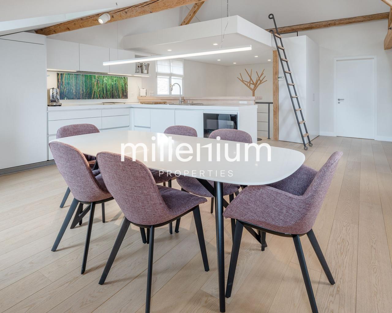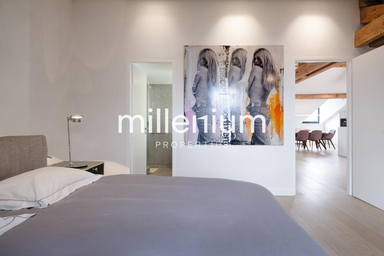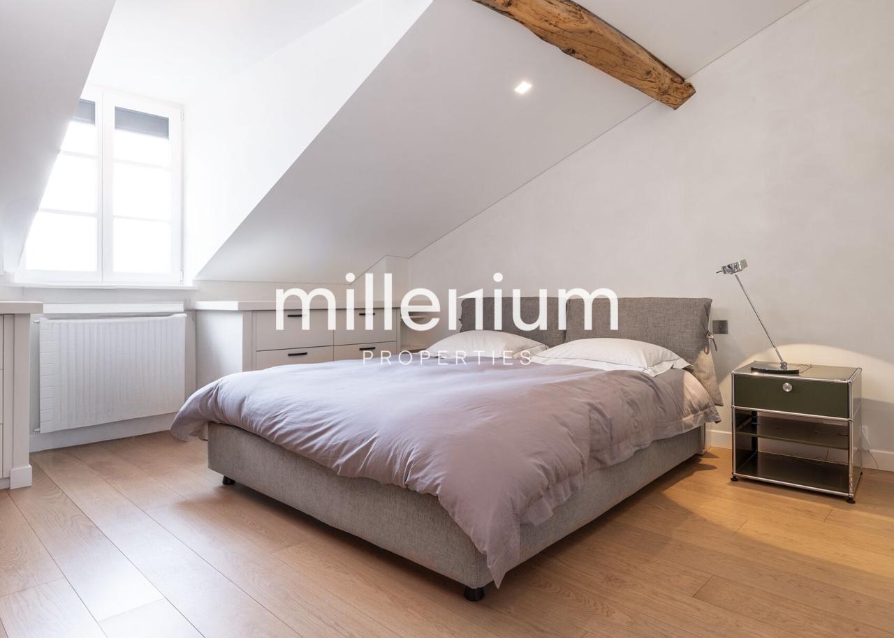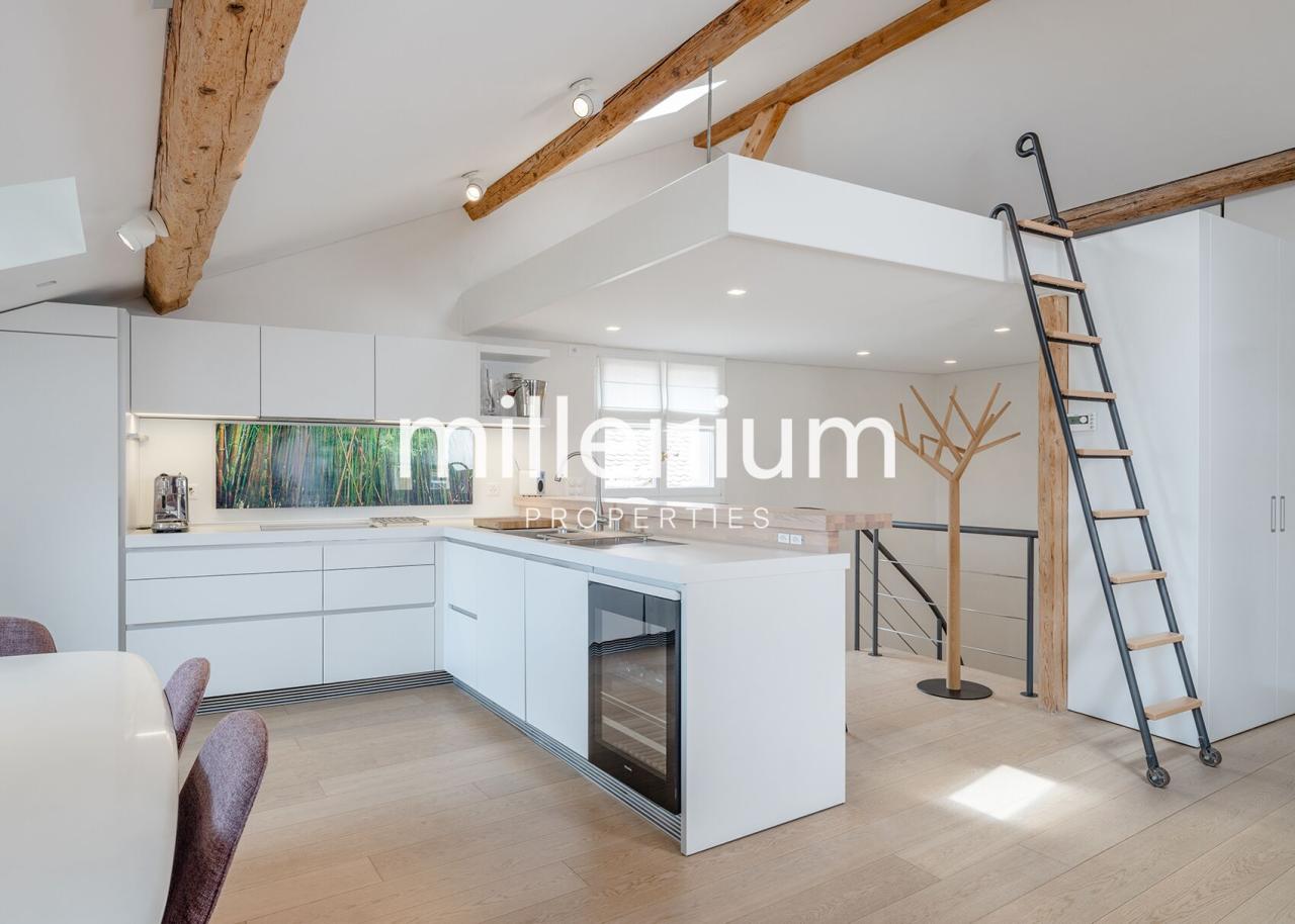Magnifique loft meublé de haut standing en attique situé au cœur du vieux Carouge, alliant charme et grand design dans un intérieur pensé comme une œuvre d’art.