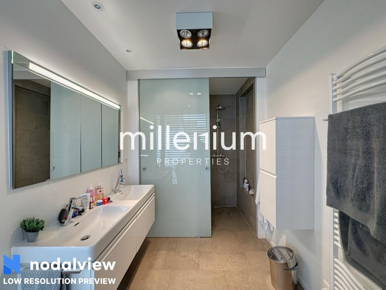 À l’extérieur, la maison dispose de deux belles terrasses : l’une, exposée plein sud, s’ouvre sur un agréable espace vert avec une grande piscine, offrant un cadre idéal pour se détendre ; l’autre, côté nord, constitue un espace supplémentaire appréciable.