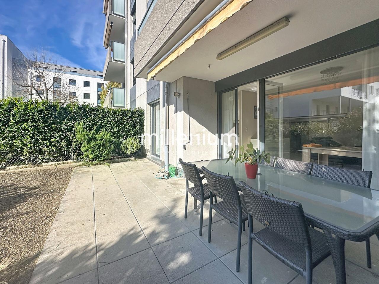 Très bel appartement meublé moderne de 5 pièces situé au rez de chaussée d'un immeuble dans le quartier prisé de Chatelaine.