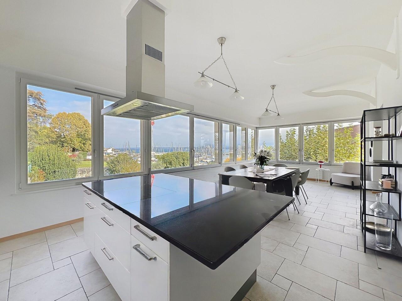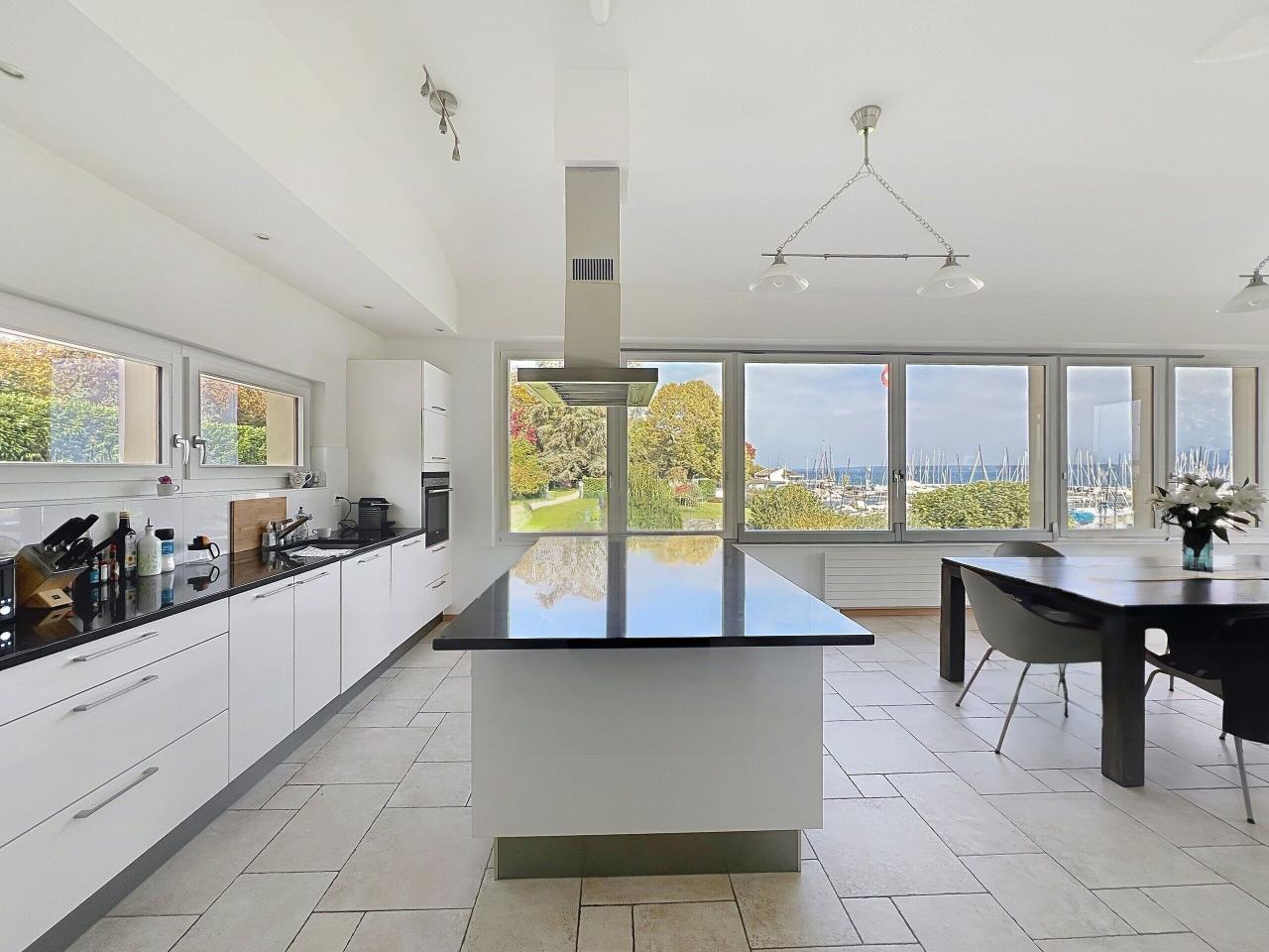 - Une pièce de vie lumineuse grâce à ses nombreuses baies vitrées à la vue imprenable sur le port et le Lac,