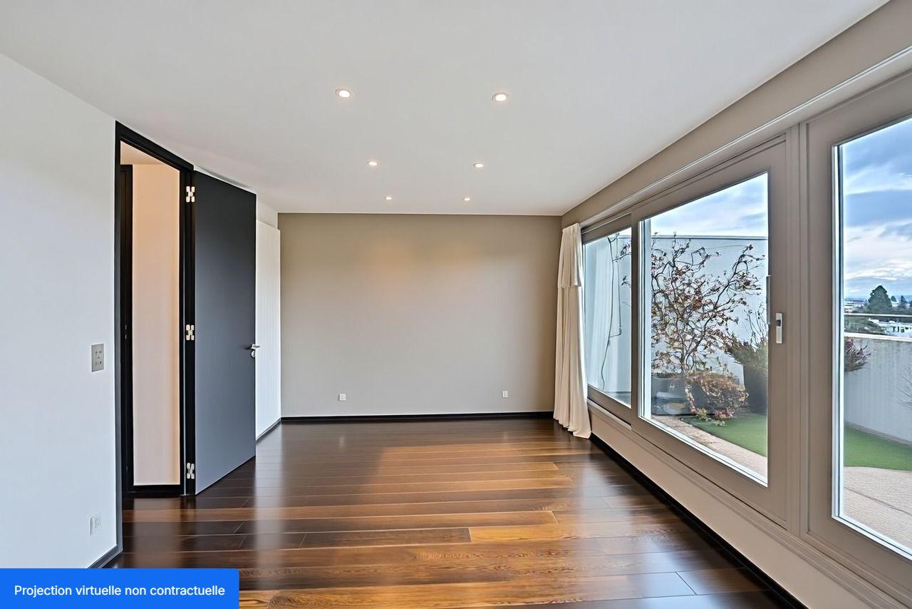 Toutes les pièces bénéficient d’une vue imprenable : sur la rade à l’ouest, le Salève au sud ou encore la chaîne des Alpes et le Mont-Blanc à l’est.