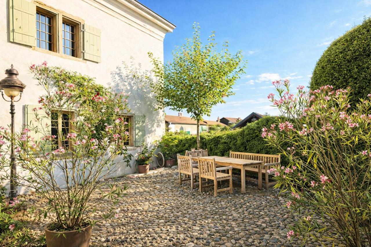 Située au cœur du village historique de Landecy, classé au patrimoine national protégé, cette maison de maître entièrement rénovée offre un cadre de vie rare, alliant charme, prestige et sérénité. À seulement 10 minutes du centre-ville et de l’aéroport de Genève, vous profitez d’un environnement verdoyant exceptionnel, entouré de châteaux, maisons de village et domaines ruraux.