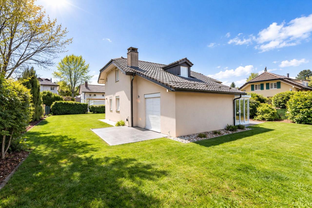 Située dans un quartier résidentiel calme et recherché de Versoix, à deux pas du très réputé Collège du Léman, cette charmante villa individuelle construite en 2008 offre un cadre de vie idéal, alliant confort moderne, tranquillité et proximité immédiate des commodités.