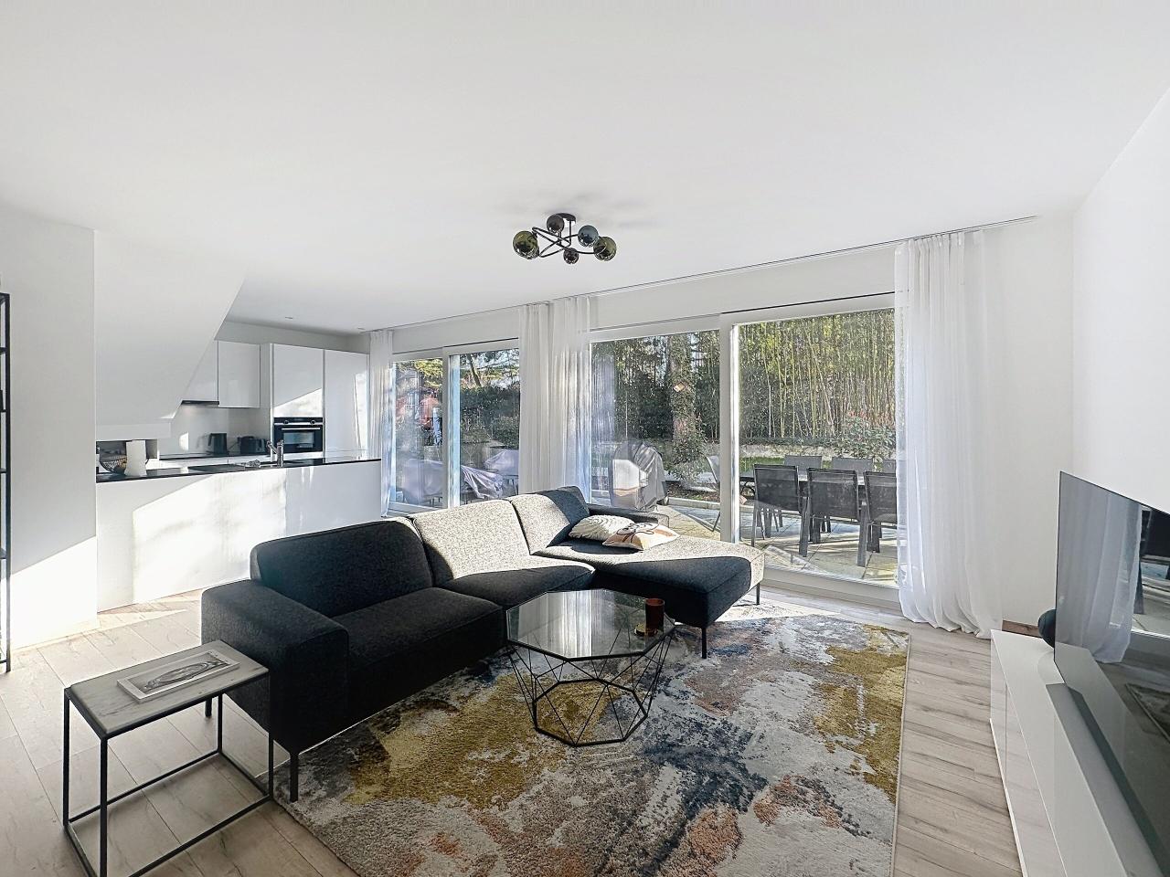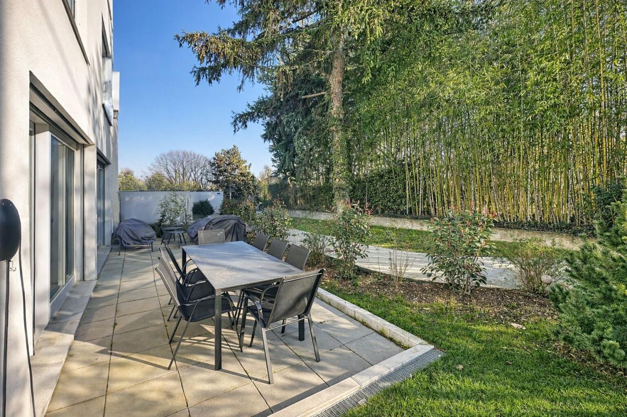 Cet appartement moderne, au rez-de-chaussée surélevé, offre un cadre de vie exceptionnel avec des finitions contemporaines et des pièces lumineuses