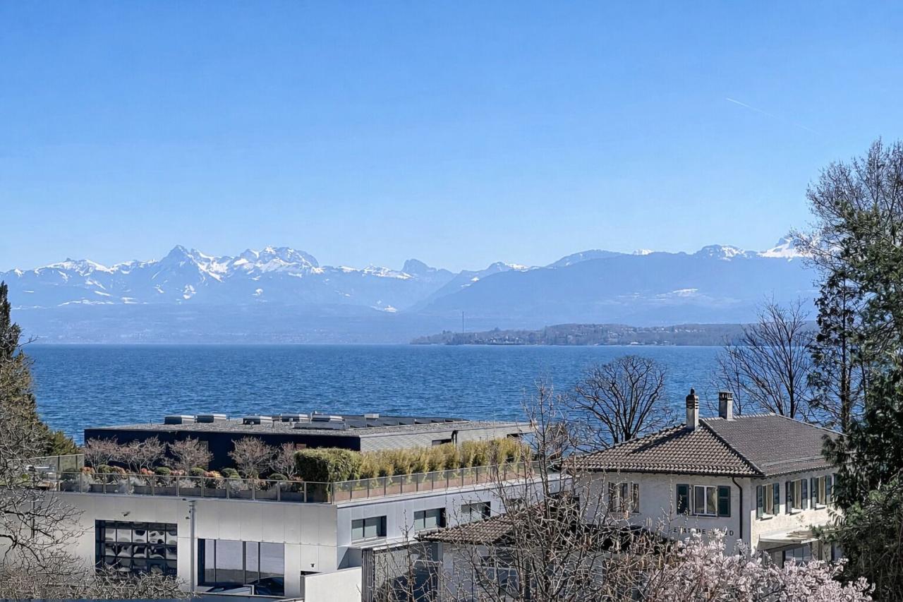 Baigné de lumière, ce bien d’exception offre une vue plongeante spectaculaire sur le Léman, dans un environnement agréable et recherché, au sein d’une ville dynamique et conviviale.
