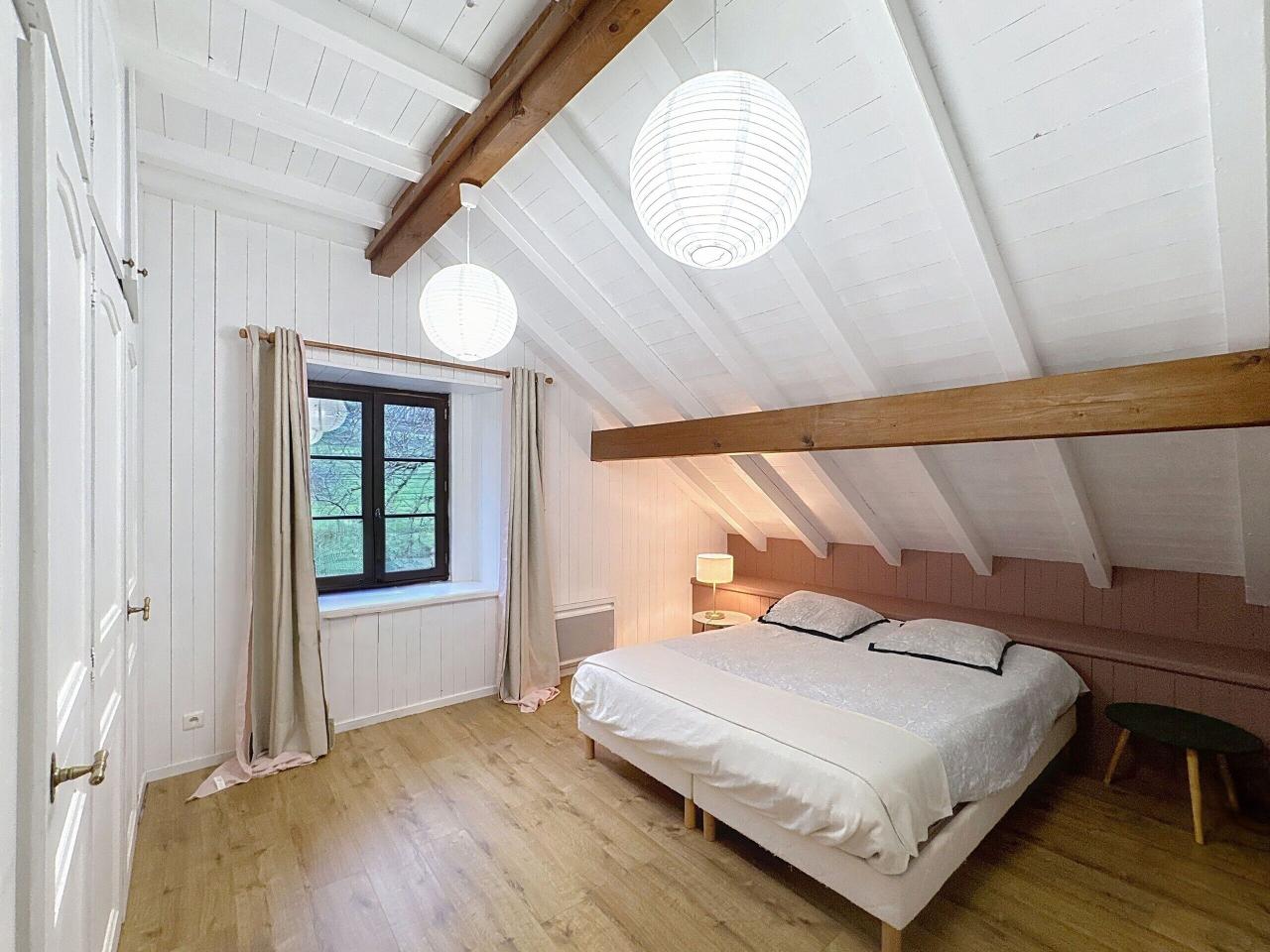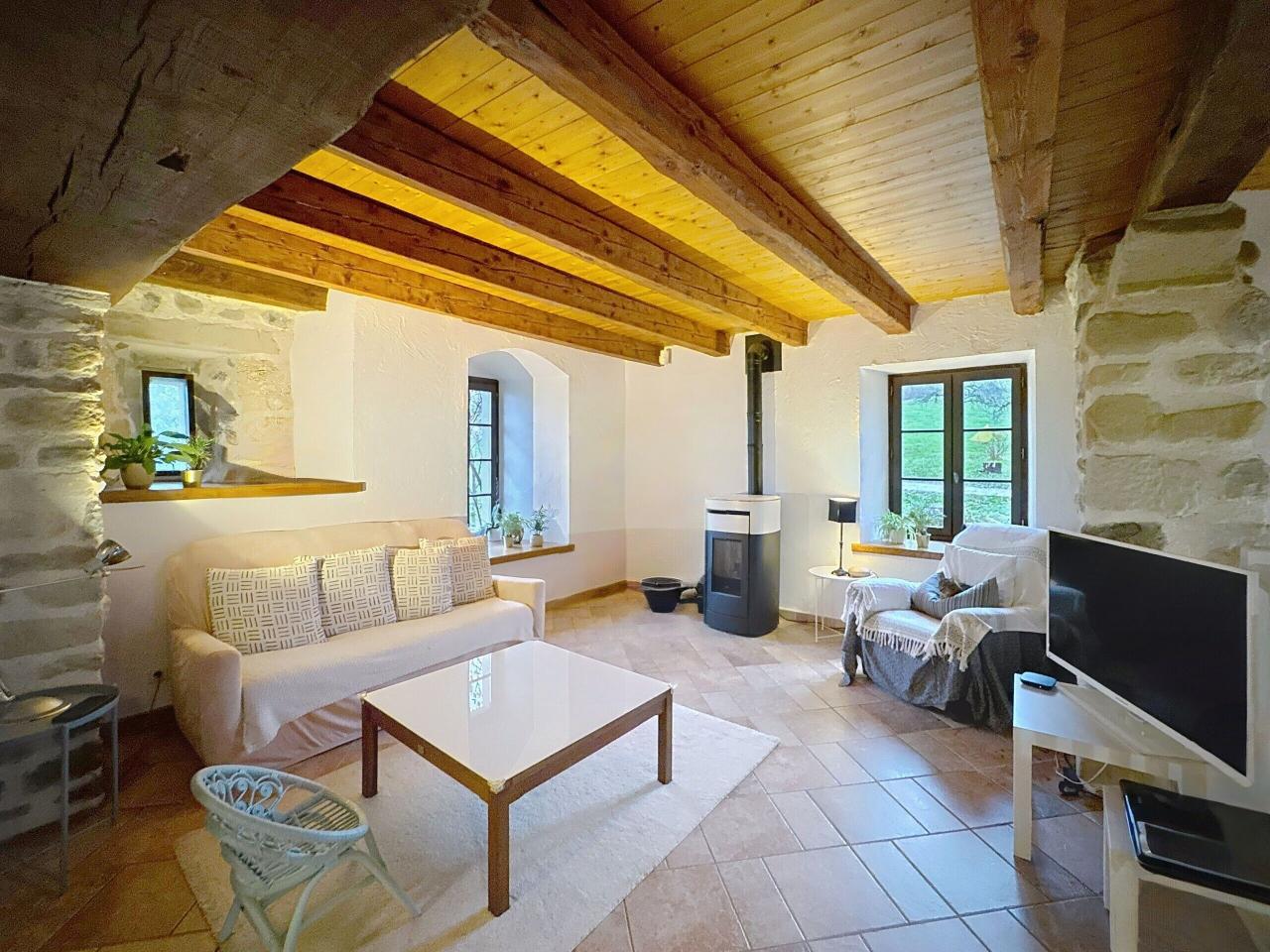 Ancienne chèvrerie du XIXᵉ siècle, cette propriété de caractère a été entièrement réhabilitée par un architecte genevois, dans le plus grand respect des matériaux et de l’âme d’origine.