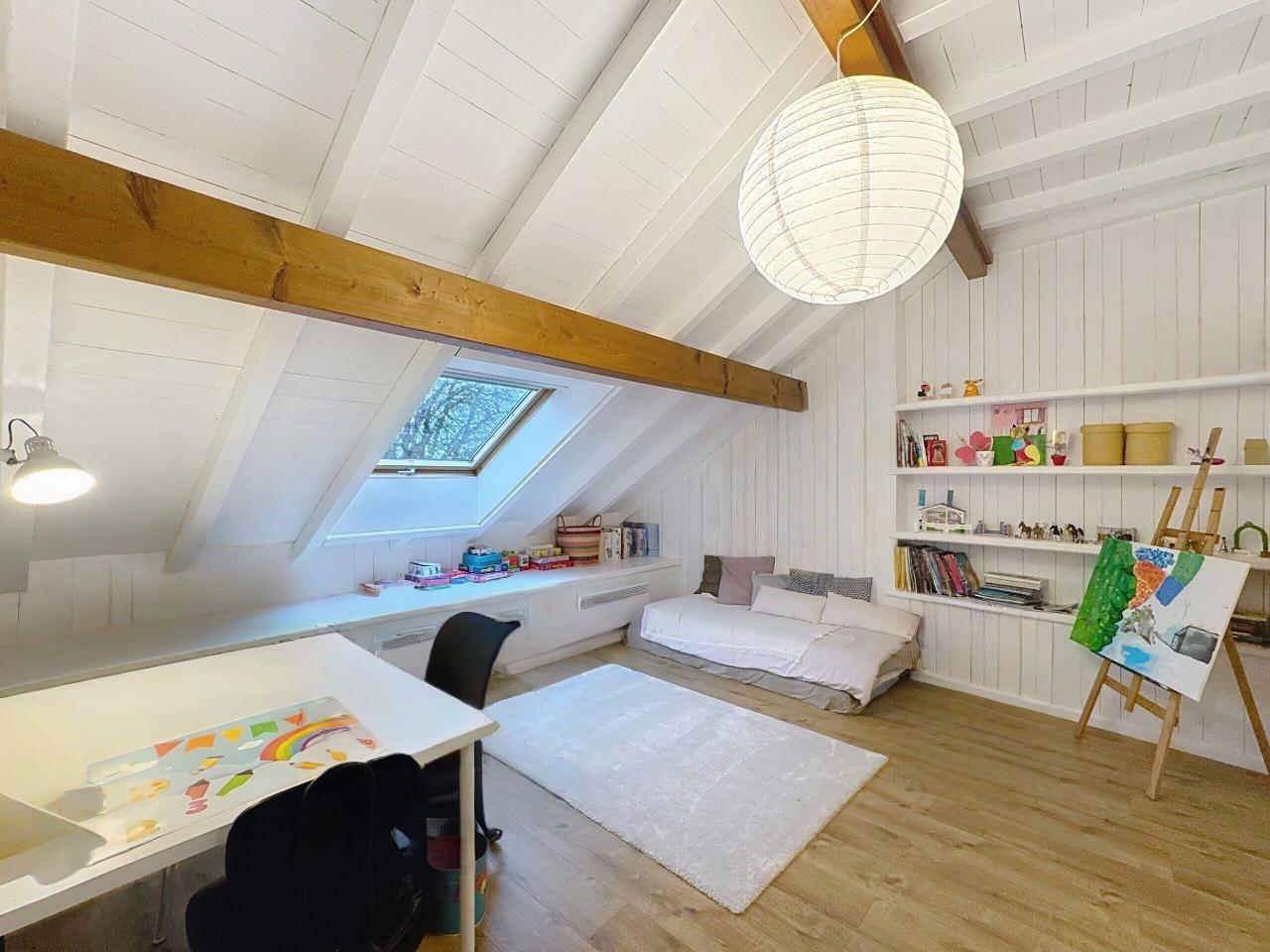 Idéalement située entre Annecy et Genève, elle bénéficie d’un environnement préservé et d’une vue dégagée, offrant un cadre de vie paisible et recherché.