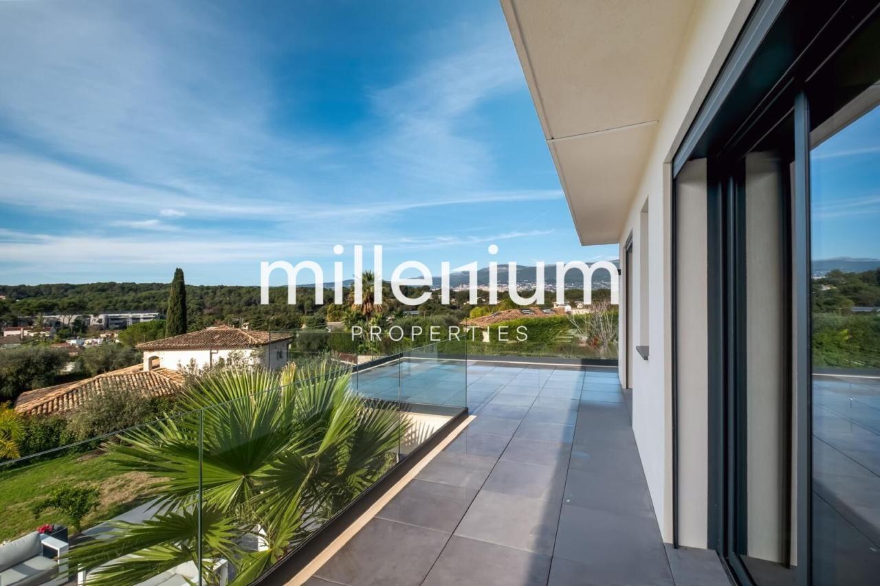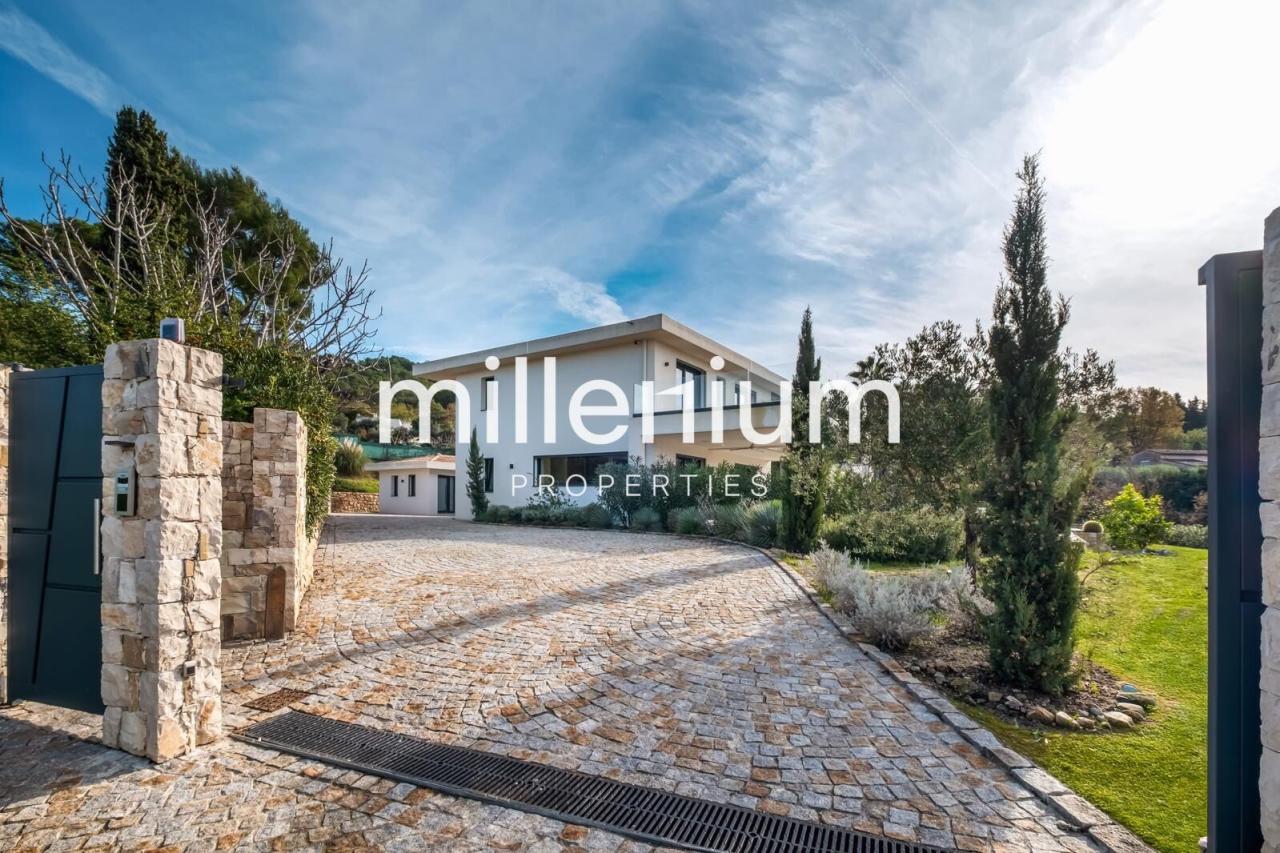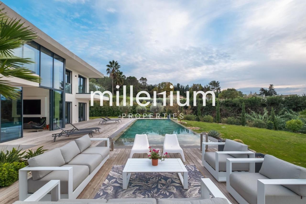 Découvrez cette Somptueuse villa d’architecte neuve située à Mougins, dans un secteur calme, et proche de toutes commodités.Nichée au cœur d’un terrain paysager de 2 791m², elle offre une belle vue dégagée.
