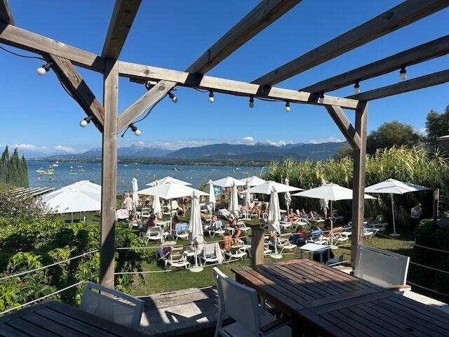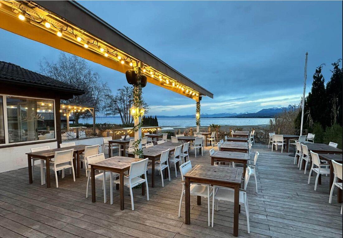 Terrasse d'environ 170m2 ainsi qu'une plage privée de 435 m², véritable atout commercial et lieu d’expérience client.