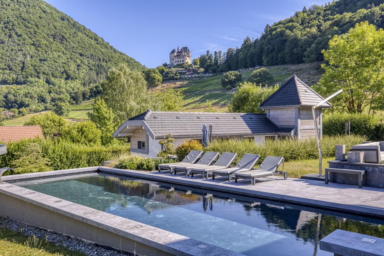 Située dans un environnement privilégié à Menthon-Saint-Bernard, à deux pas du château, cette propriété entièrement rénovée développe environ 295 m² et séduit par ses prestations de qualité.